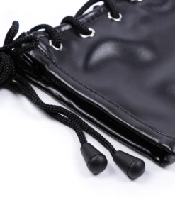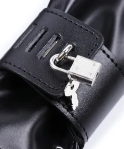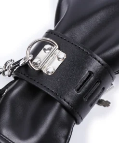 These bondage mittens fully enclose the hands, restricting finger movement and enhancing submission. Made from smooth faux leather with soft lining for comfort during extended wear.