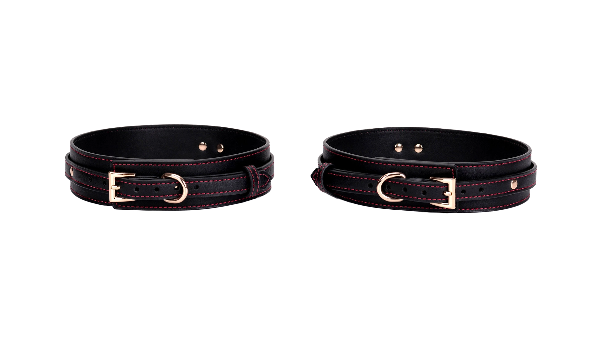 Black Thigh Restraint Straps with Red Stitching