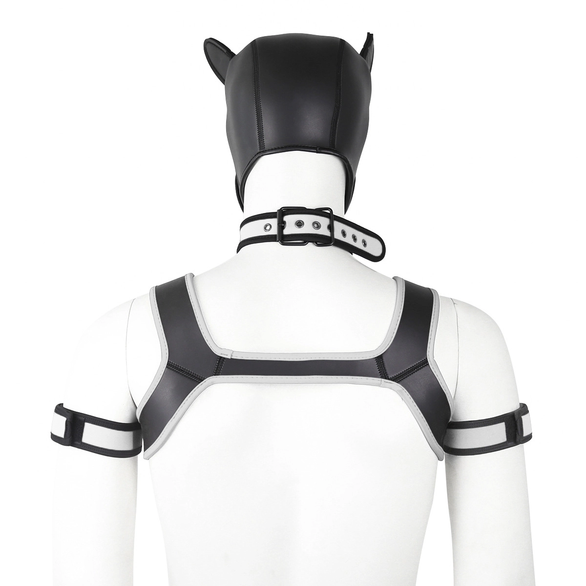 - A wide chest harness with matching armbands