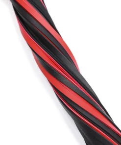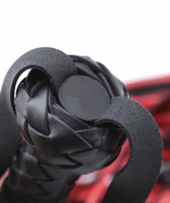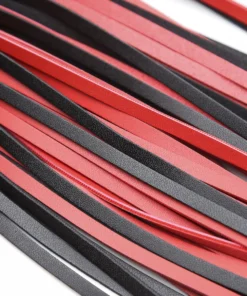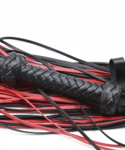 Bold red and black flogger with braided handle. Easy to use, strong, and great for all levels of impact play.