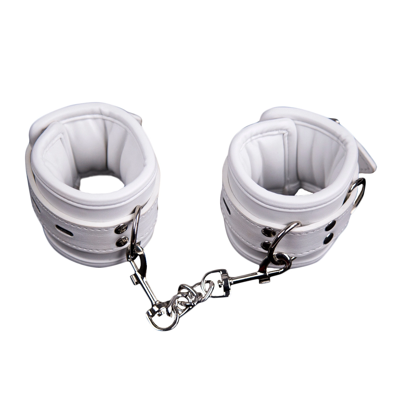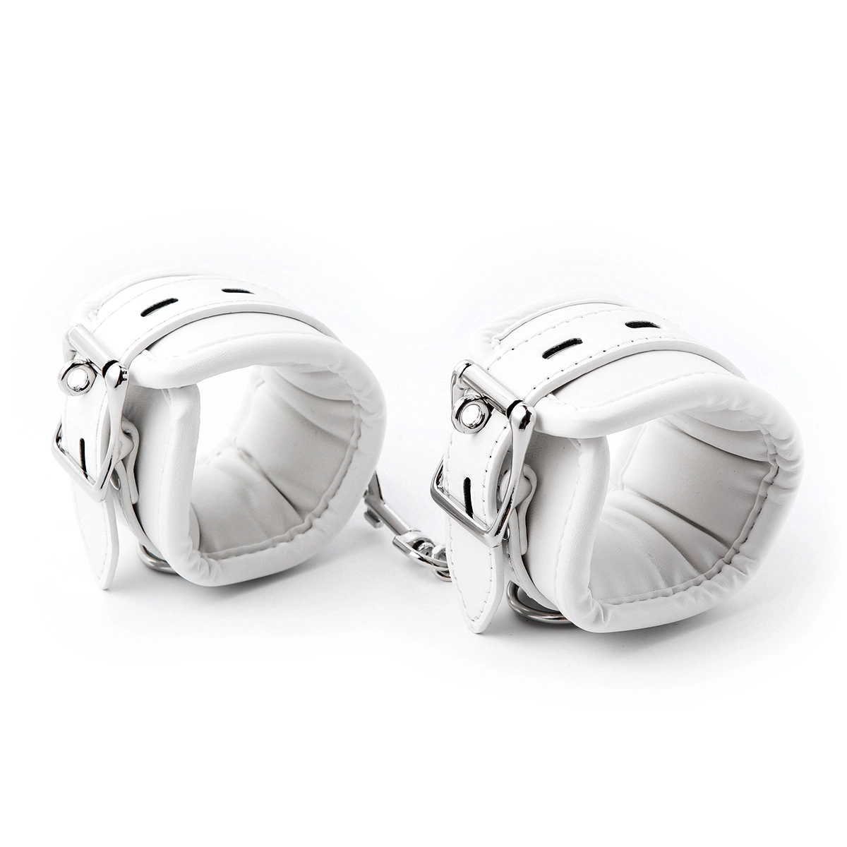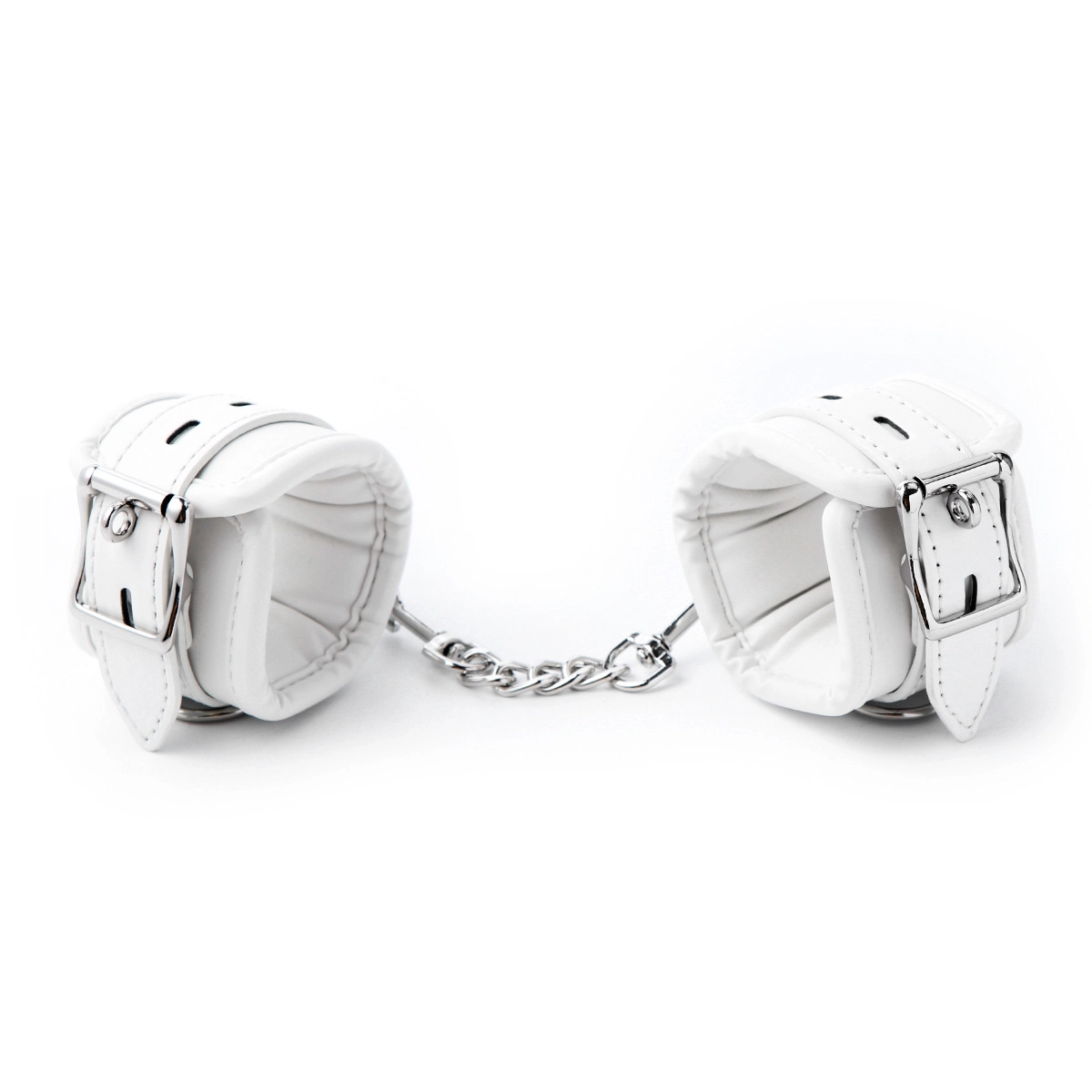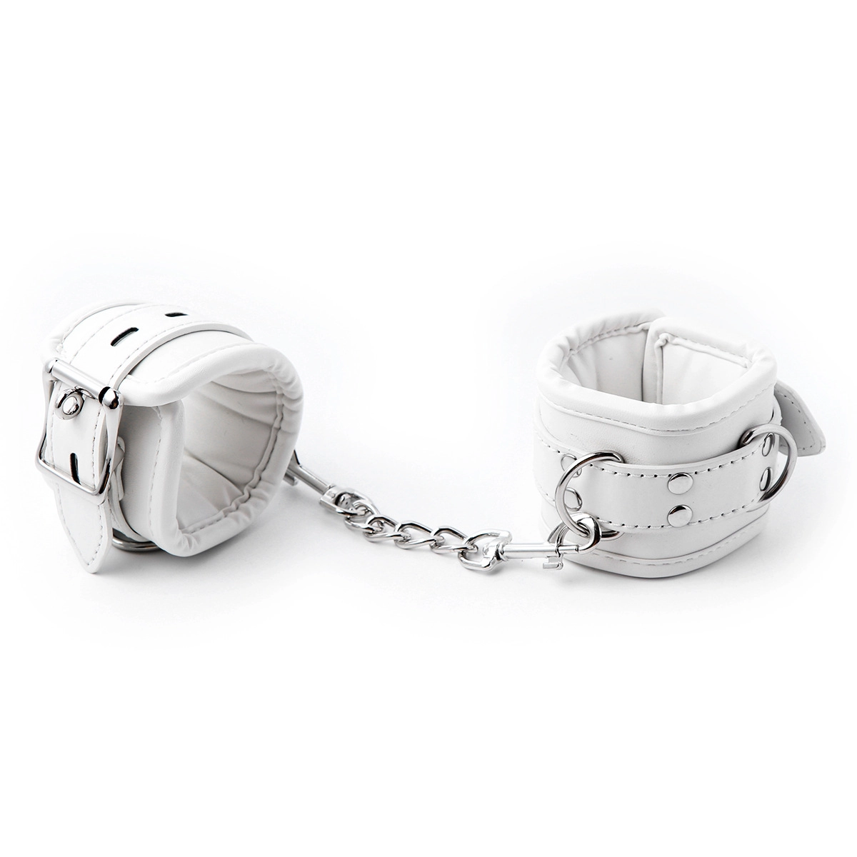 These white leather handcuffs combine comfort with control. The soft padded lining protects the skin, while the sturdy buckle ensures a firm hold during play. Ideal for both beginners and experienced users.