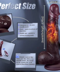 This G-spot dildo features lifelike textures with a vivid glans, thick shaft, and soft wrinkled balls. The heating function simulates body temperature for a realistic feel during vaginal or anal play.